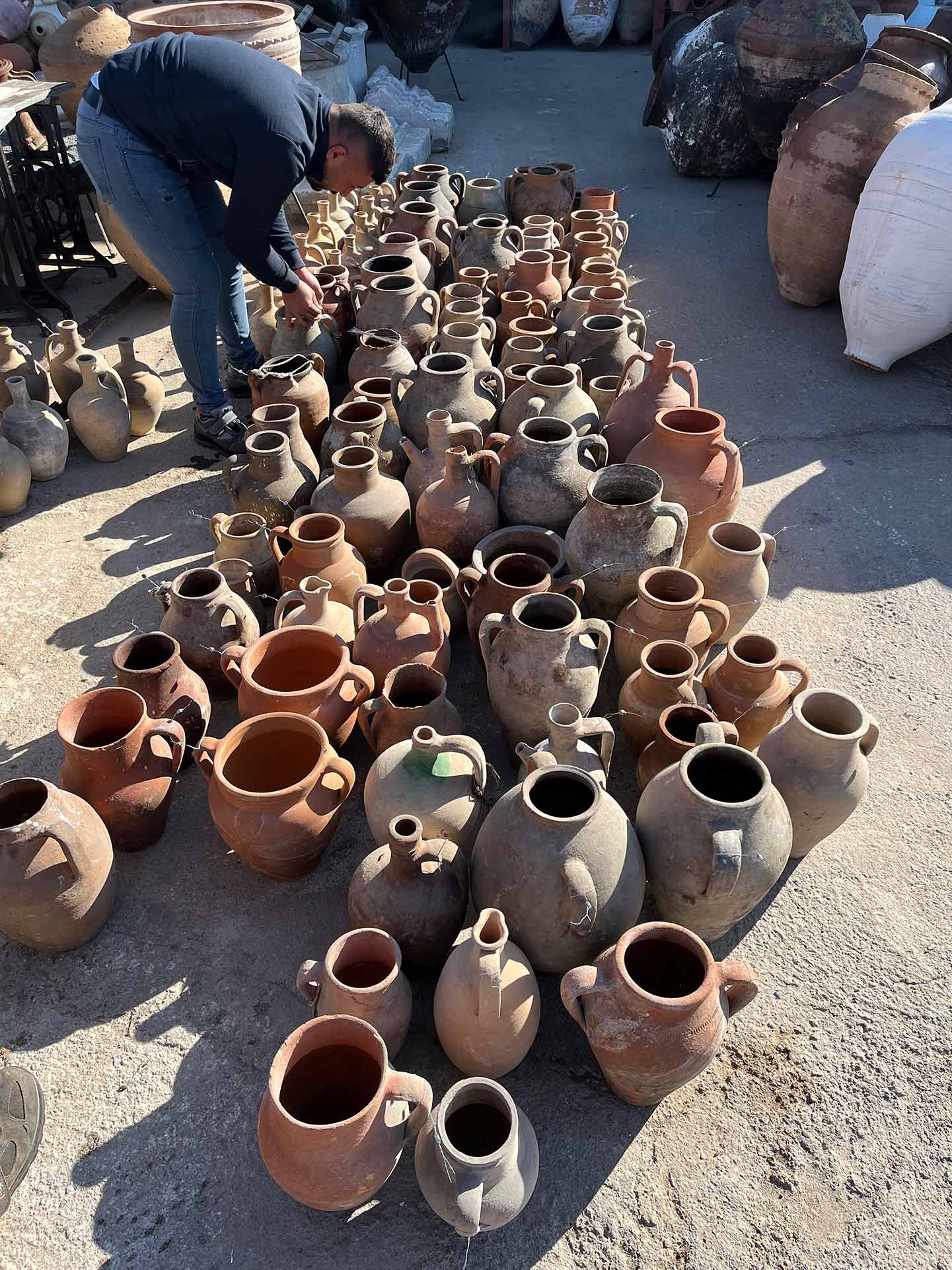 المواد الخزفية التي جمعناها من رحلتنا في جميع أنحاء بلدنا وعرضناها في مستودعنا البالغ مساحته 16.000 متر مربع، تم استخدامها في أوقات مختلفة لإنتاج زيت الزيتون والدبس والحبوب والجبن وغيرها من المنتجات. تم استخدامها لتخزين مجموعة متنوعة من المنتجات